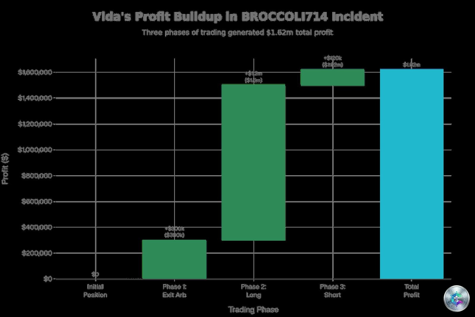 This strategy worked. Vida accumulated $200,000 in long positions at an entry cost of approximately $0.046, effectively front-running the mysterious $26 million buyer.