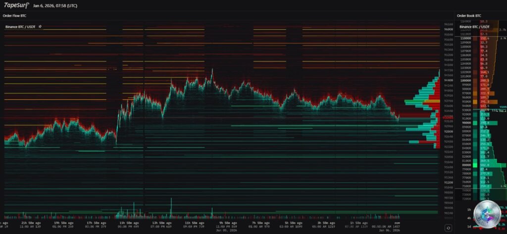 Ce mur de liquidations représente un potentiel « Short Squeeze » explosif. Si le prix pénètre au-dessus de 94 000$, ces ordres d’achat forcé se déclencheront en cascade, créant une boucle de rétroaction positive capable de propulser le cours verticalement à travers 95 000$ – 96 000$ avec peu de résistance réelle.