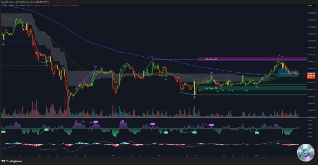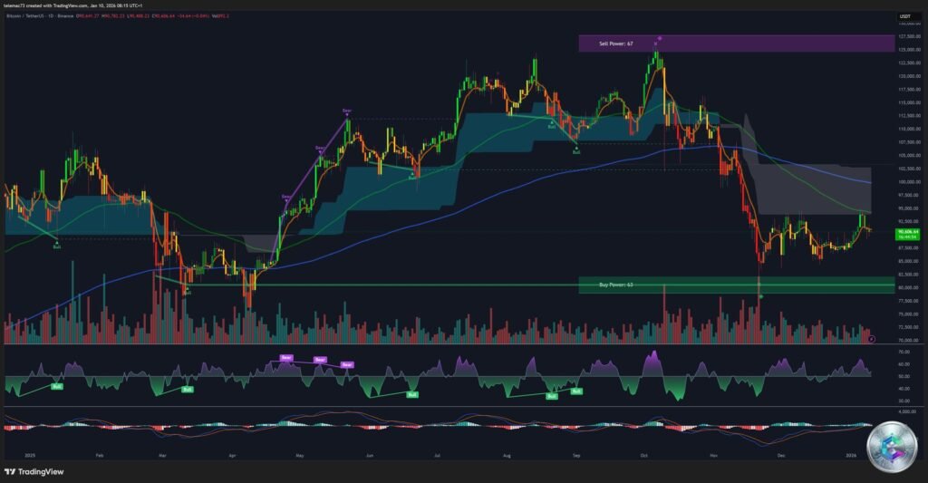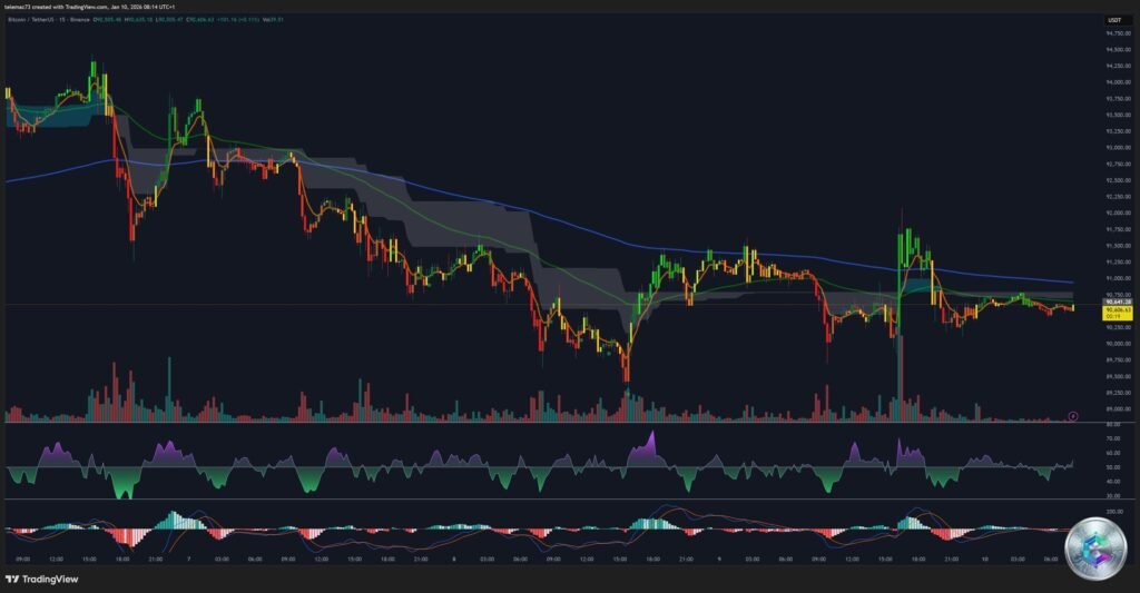 - Moyenne Mobile 200 : ~90 664$, le prix oscillant autour de ce niveau critique. Une clôture nette en dessous confirmerait un changement de régime de marché