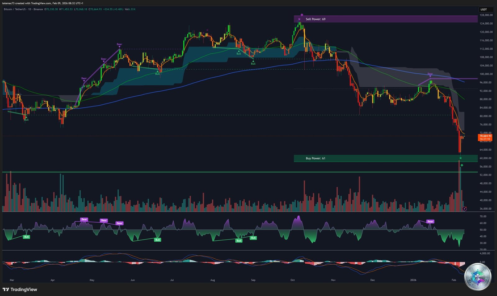 The weekly chart places the current correction in a broader perspective. After losing nearly 50% from its October 2025 peak, Bitcoin stands at a major technical crossroads. Momentum indicators show potential bullish divergence, suggesting that a final capitulation could be near, paving the way for a new medium-term bullish cycle.