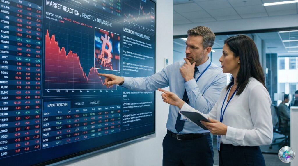 In October 2025, MSCI launched an explosive consultation: exclude from the MSCI Global Investable Market indices companies whose assets are more than 50% in Bitcoin or other crypto, considering they resemble funds rather than operational companies. Among the 39 potentially targeted stocks: MicroStrategy (renamed « Strategy Inc. » in several reports), Metaplanet, and other listed companies that made Bitcoin their main treasury asset.