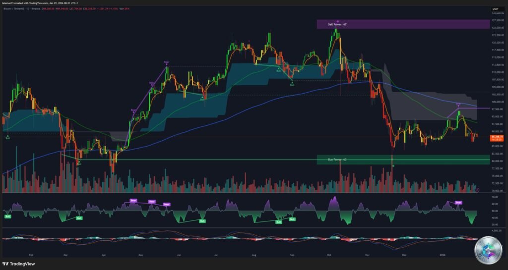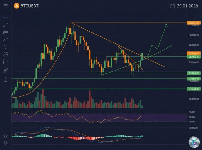 As of January 29, 2026, Bitcoin is navigating through a major turbulence zone that worries both institutional and retail investors. After reaching an all-time high of $126,186 in October 2025, the leading cryptocurrency has lost nearly 28% of its value and is now oscillating dangerously around $88,000.
