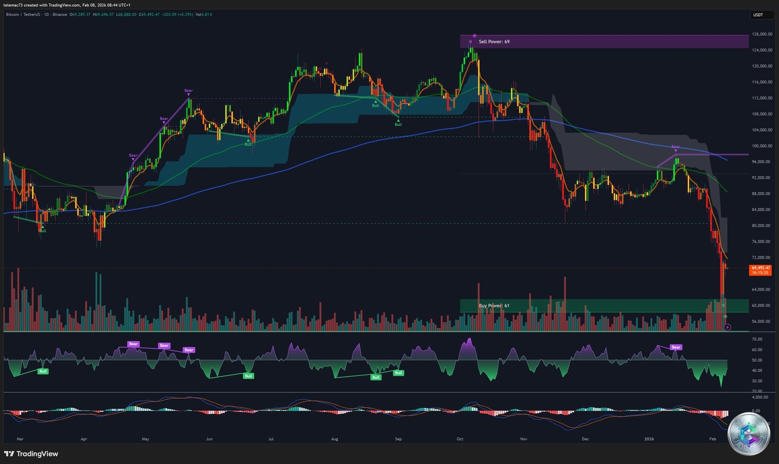 The Bitcoin market is currently experiencing a brutal restructuring phase in early February 2026. After reaching peaks near $126,000 in October 2025, the asset underwent a massive correction of nearly 50%, finding temporary support around $60,000 on February 5th.
