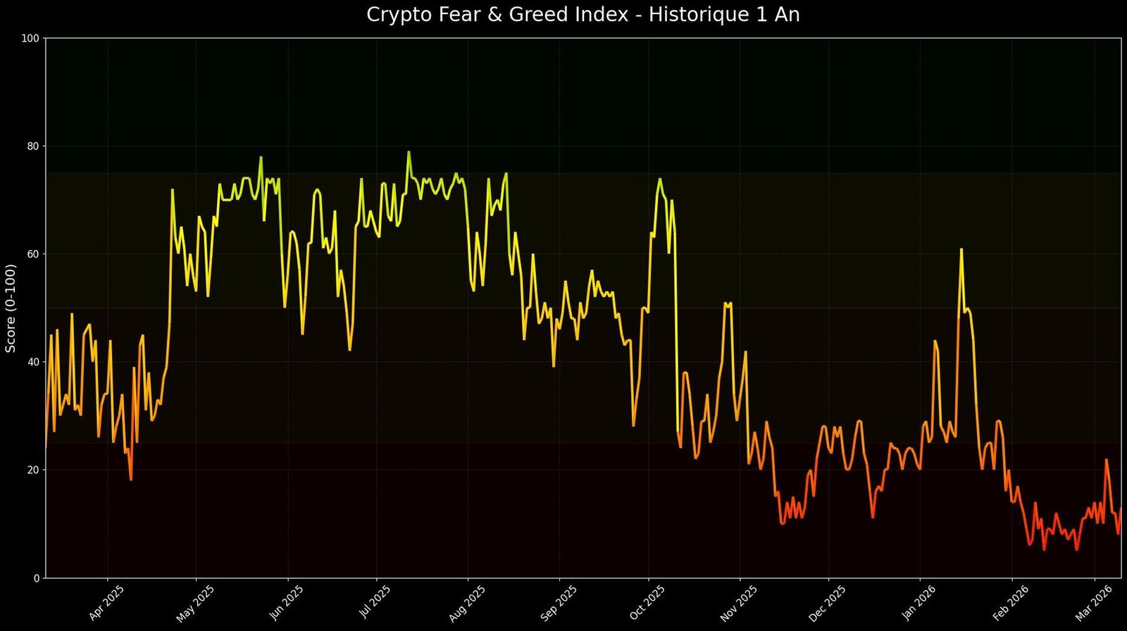 Fear & GreedFear & Greed Index 10/03 15h25mars 10, 2026By Telemac ShareFacebookXPinterestWhatsApp Telemachttp://cryptoinfo.chPassionné de nouvelles technologies, j’explore l’univers de la blockchain et des cryptomonnaies pour partager l’actualité et les innovations du secteur.Lire la Suite Short NewsXRP derivatives funding rates rocket over 311% in a day News CourtLes taux de financement des dérivés XRP grimpent en flèche de plus de 311% en une journée Short NewsBitcoin: Bhutan sells amid MSTR’s $1.28B BTC buy – Strategic move? News CourtBitcoin : Le Bhoutan vend alors que MSTR achète pour 1,28 milliard de dollars de BTC – Mouvement stratégique ? Short NewsStarknet Prepares STRK20 Framework to Enable Privacy‑Focused Stablecoins and AssetsArticles Short NewsXRP derivatives funding rates rocket over 311% in a day News CourtLes taux de financement des dérivés XRP grimpent en flèche de plus de 311% en une journée Short NewsBitcoin: Bhutan sells amid MSTR’s $1.28B BTC buy – Strategic move? News CourtBitcoin : Le Bhoutan vend alors que MSTR achète pour 1,28 milliard de dollars de BTC – Mouvement stratégique ?