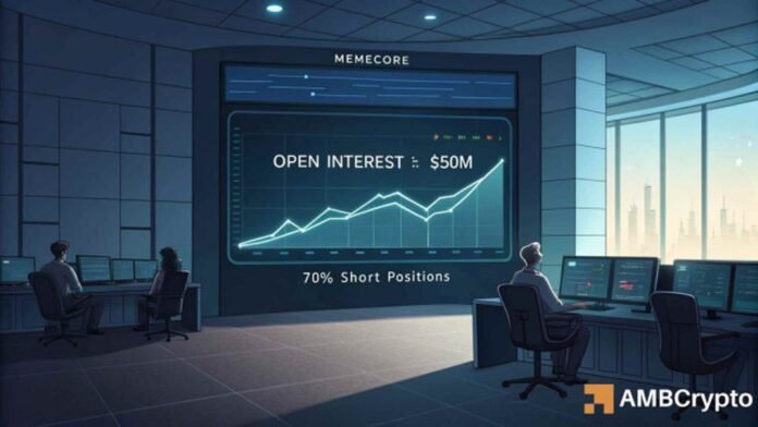 Memecore surges by 20% with strong momentum, but an imbalance zone raises the risk of a short-term correction.