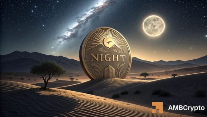 NIGHT climbs despite falling volume while traders remain heavily short near critical resistance levels.