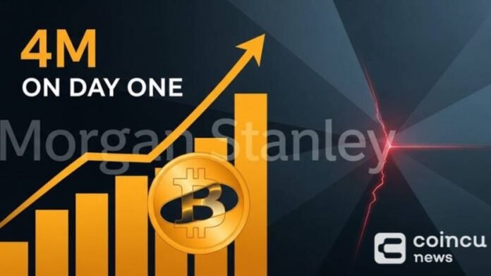 Morgan Stanley’s newly launched Bitcoin ETF, trading under the ticker MSBT, pulled in approximately $34 million on its first day of trading on April 8, 2026, making the bank the first major U.S. financial institution to issue and list its own spot Bitcoin ETF. The fund’s 0.14% expense ratio, the lowest among spot Bitcoin ETFs, immediately sharpened the fee war that has defined the sector since January 2024.